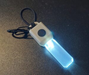 Kinder-Warnwesten, die an alle Erstklässler verteilt werden. Die LED-Blinkis können an Jacken, Rucksäcken oder Reißverschlüssen befestigt werden und leuchten entweder dauerhaft oder im Blinkmodus.